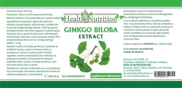 Extractul din frunza Ginkgo (Ginkgo biloba) contribuie la circulația sanguină la nivel cerebral, ajută la menținerea funcției cognitive, stimulează procesele de memorare și capacitățile mentale, crește eficiența metabolismului, regularizează neurotransmițătorii și stimulează nivelul de oxigen din creier.