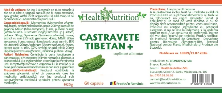 Castravete tibetan - insulina verde - este un produs foarte intens ca acțiune, cu o concentrație ridicată de principii active, destinat în principal persoanelor diabetice, dar și celor care au valori ridicate ale colesterolului sau ale trigliceridelor, precum și celor care suferă de afecțiuni cardiovasculare cronice. De asemenea, aceste ingrediente protejează vederea, ajută la o vindecare mai rapidă a rănilor, stimulează activitatea rinichilor – elemente de maximă importanță pentru calitatea vieții diabeticilor.