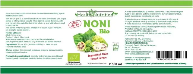 Suc de Noni (Morinda citrifolia)* - 100% suc pur, (*cultura certificata BIO).