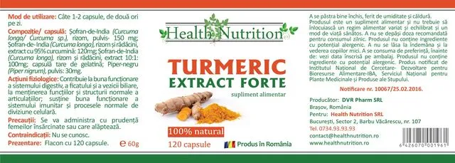 Turmeric Extract Forte conține două tipuri de extracte super-concentrate și pulvis din rădăcinăde Curcuma longa de cea mai bună calitate, din agricultură certificată ecologic. Turmericul este numit planta-fenomen, fiindu-i dedicate mii de studii medicale.